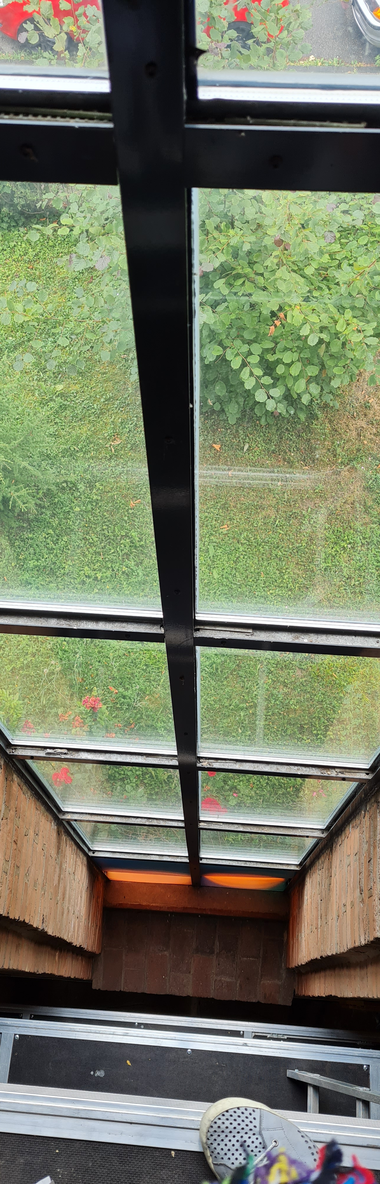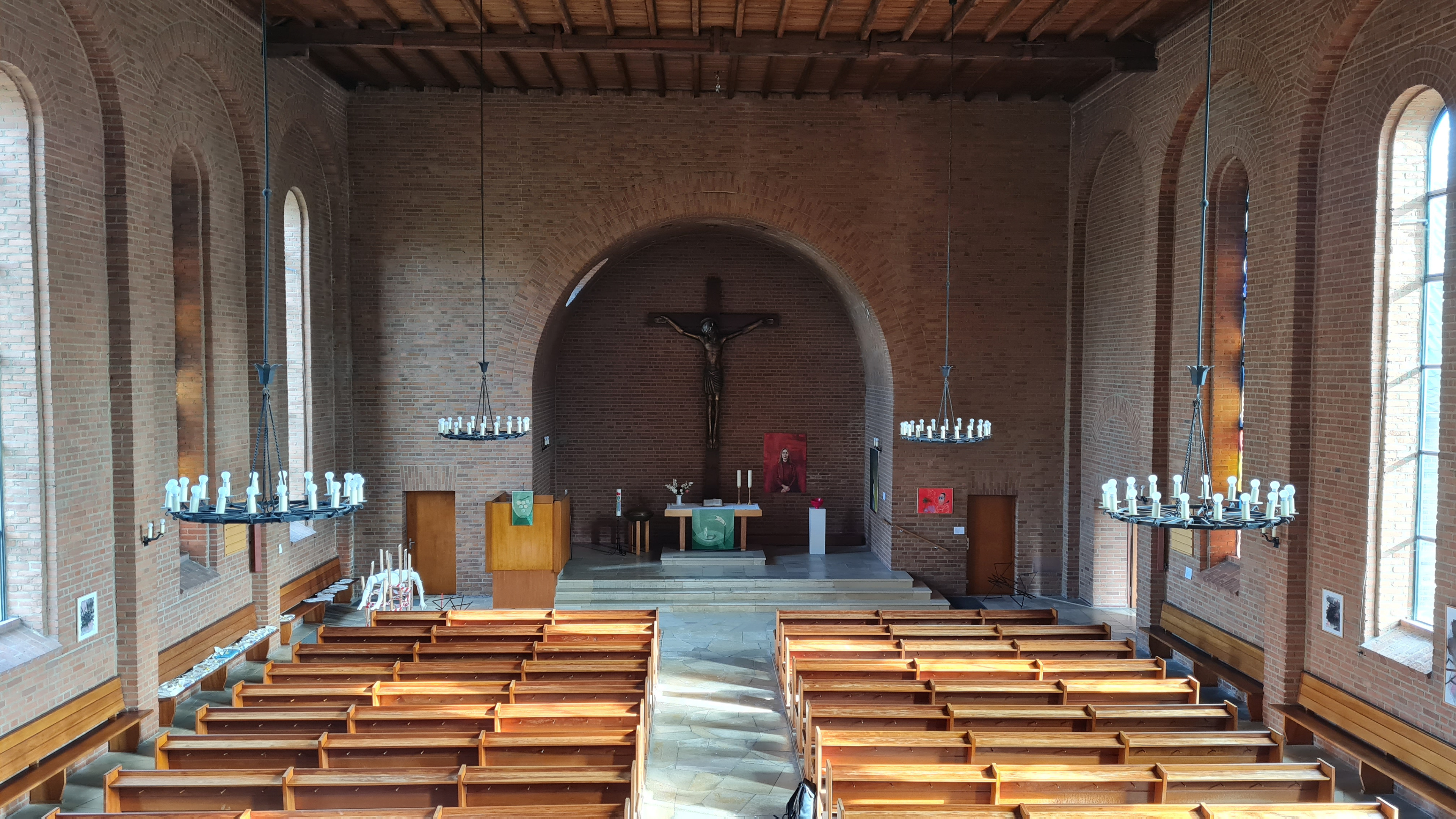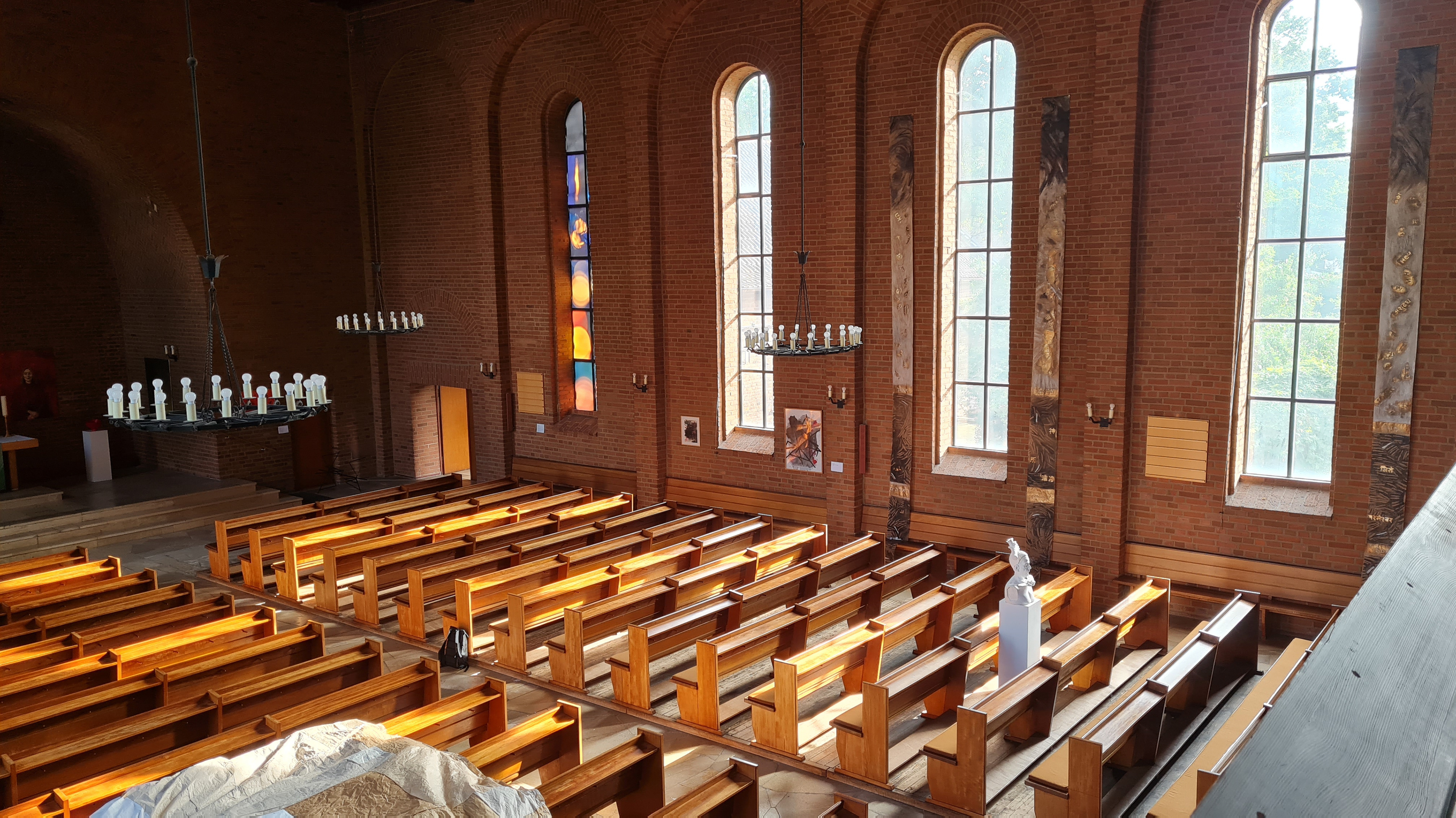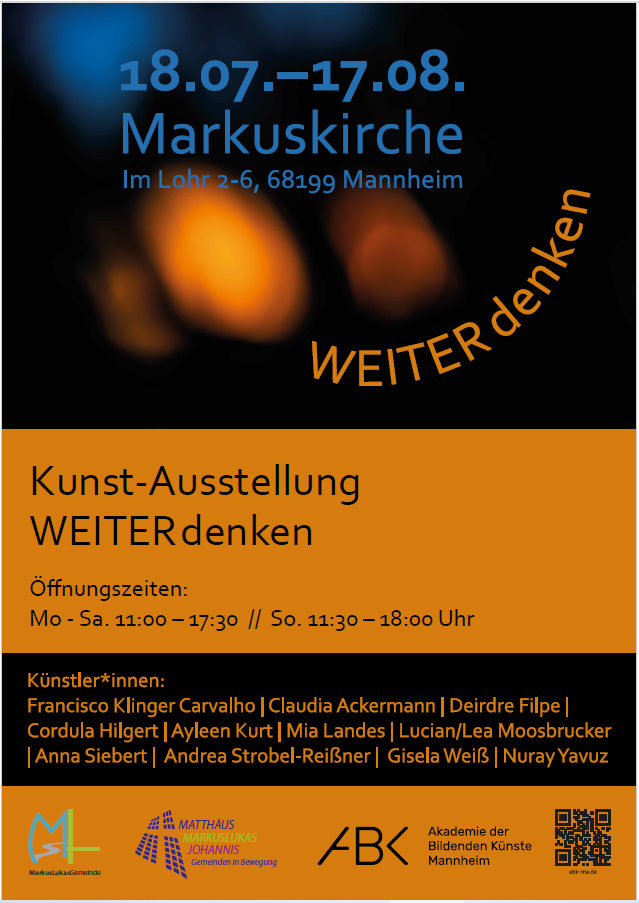 Weitergedacht zUM tHEMA lICHT HABE ICH mit Fotografien ZWEI GEGENÜBERLIEGENDE sechs Meterhohe kIRCHENFENSTER MIT bLACKLIGHTFOLIE GESTALTET. Der Aufbau mit Gerüst war sehr spannend. Die Folien durften auch nach der Ausstellung hängen bleiben.